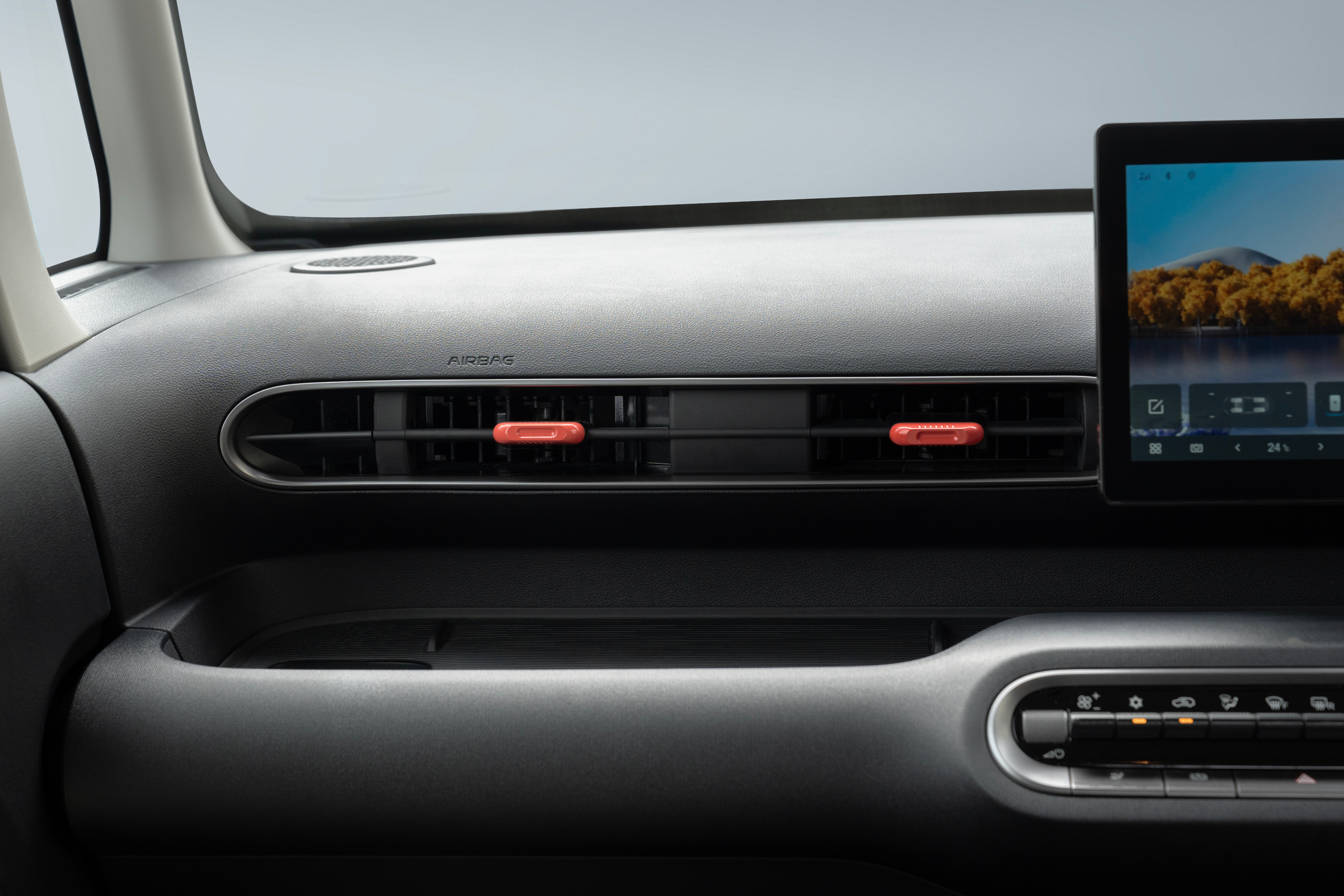 インテリアのタッチポイントは「触っても安心、優しい」を目指しました。手のひらに収まるシフトレバー、迷わない物理スイッチ、そして"置き場問題"を本気で解決する収納。