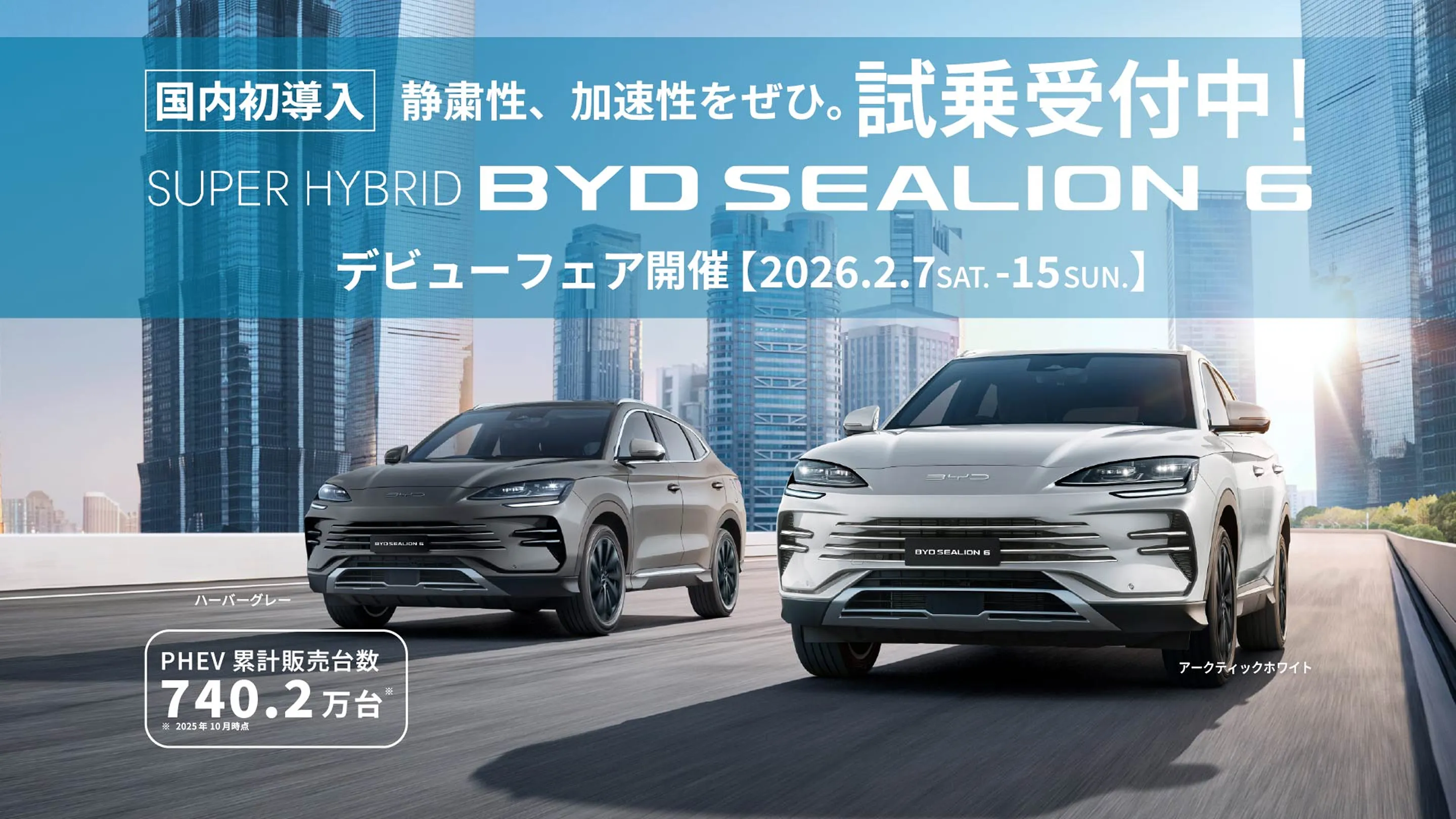 BYD SEALION 6の試乗車は、店舗によりご用意がない場合がございます。事前に各店舗の試乗車情報をご確認ください。