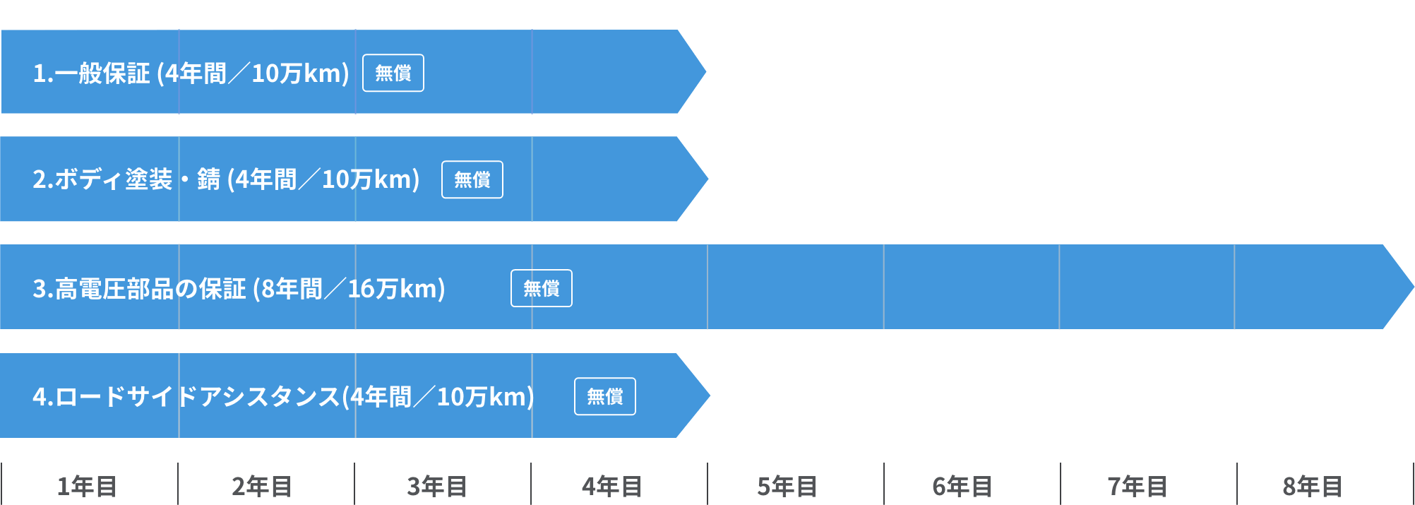 3年目の車検を含む4年間の点検パッケージとそれに付随する基本部品の交換に対応